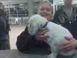 Charlotte 10 weeks meeting her human mom Theresa in Vancouver photo courtesy of: Theresa & Robert Coles