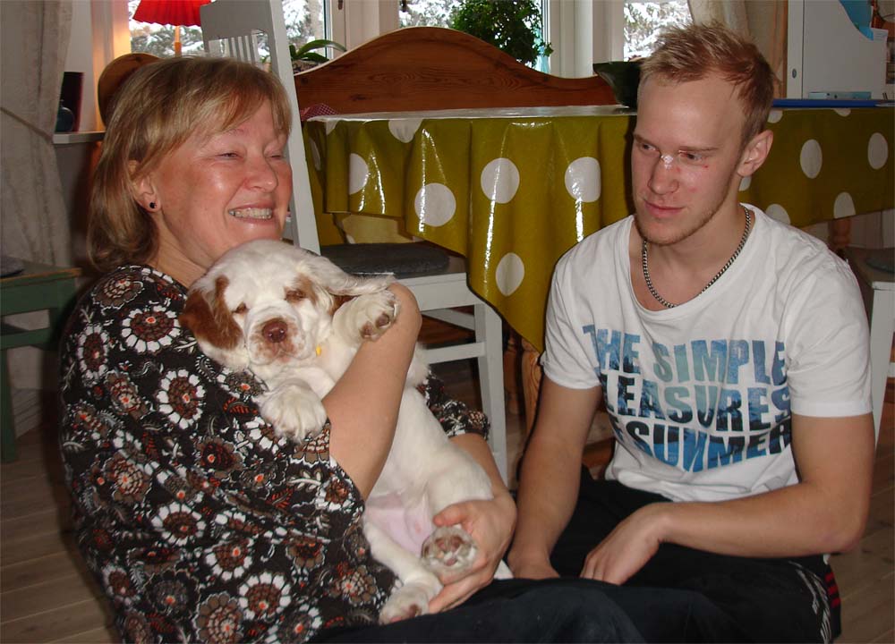 Sally 11 weeks old with Stina & Hugo Juhlin
