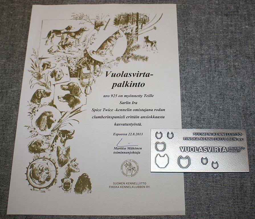 Finnish Kennel Club awared Spice Twice breeding programme in 2013