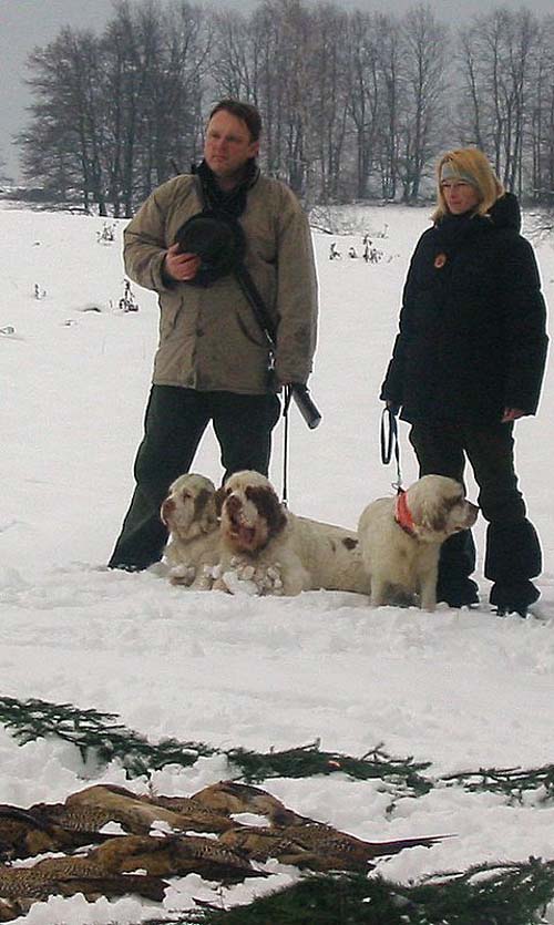 Ira (on right) on hunting with her Clumber brohter Ondra