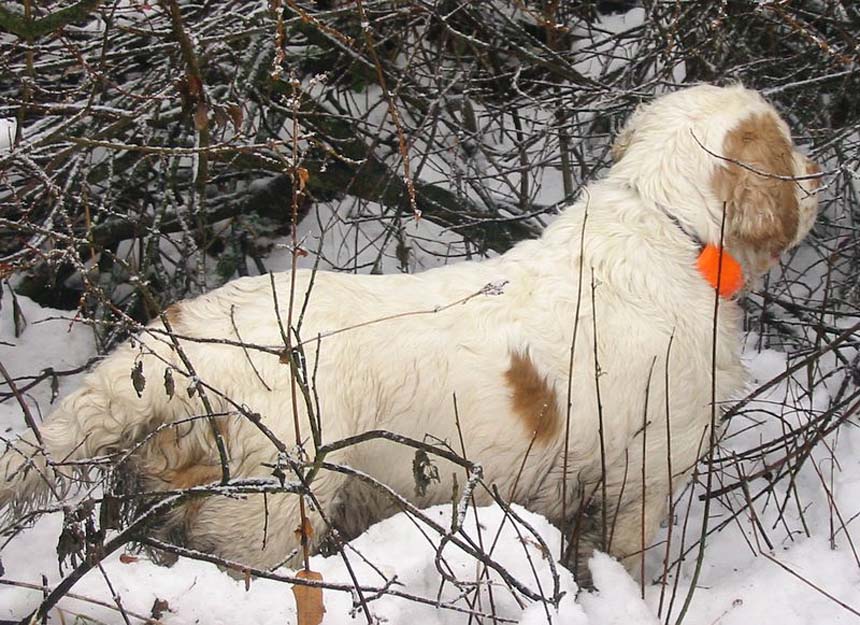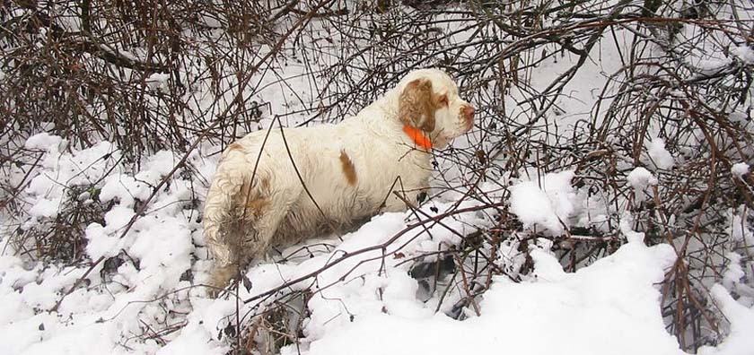 Ira on hunting with her human papa Vojta & Clumber brother