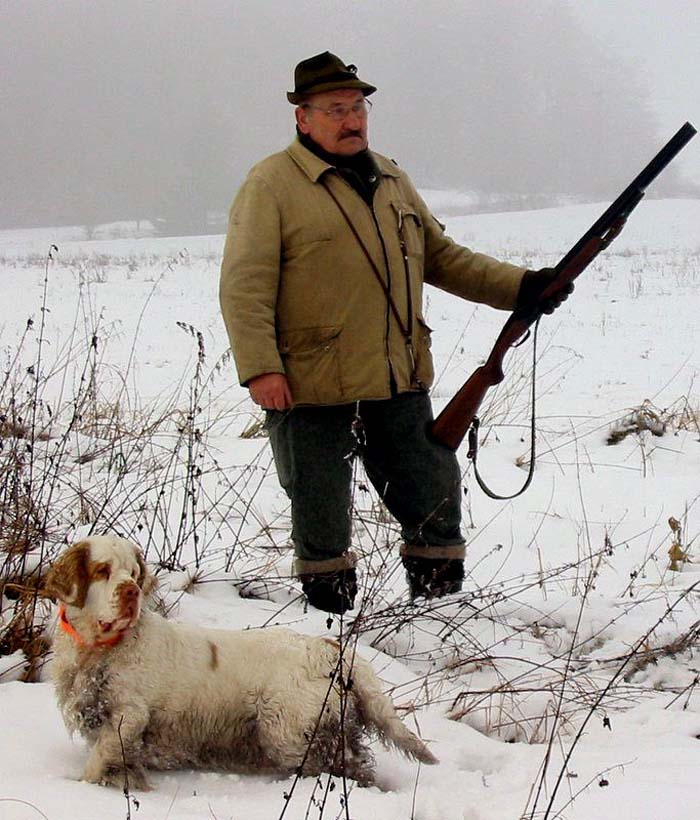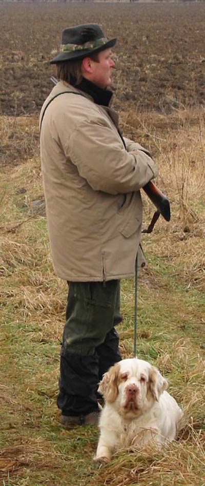 Ira on hunting with her human papa Vojta & Clumber brohter