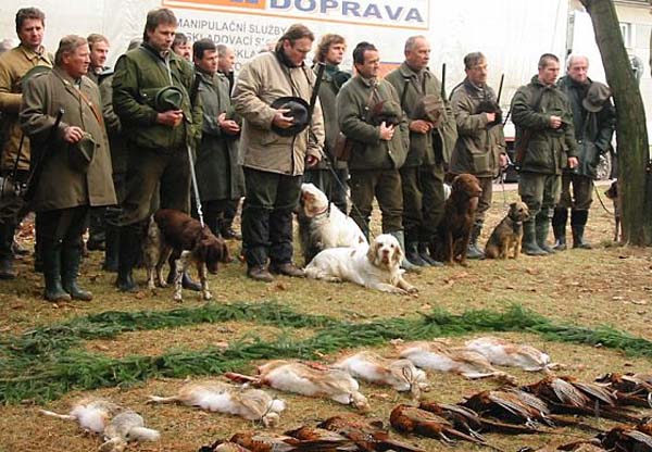 Ira (on most left) on hunting with her human papa Vojta &