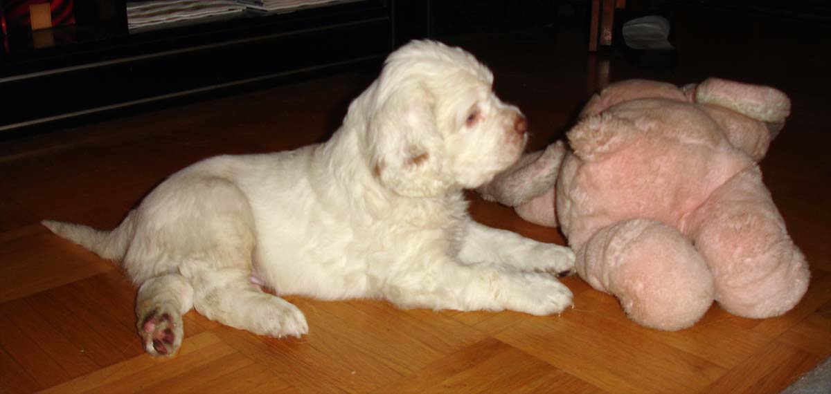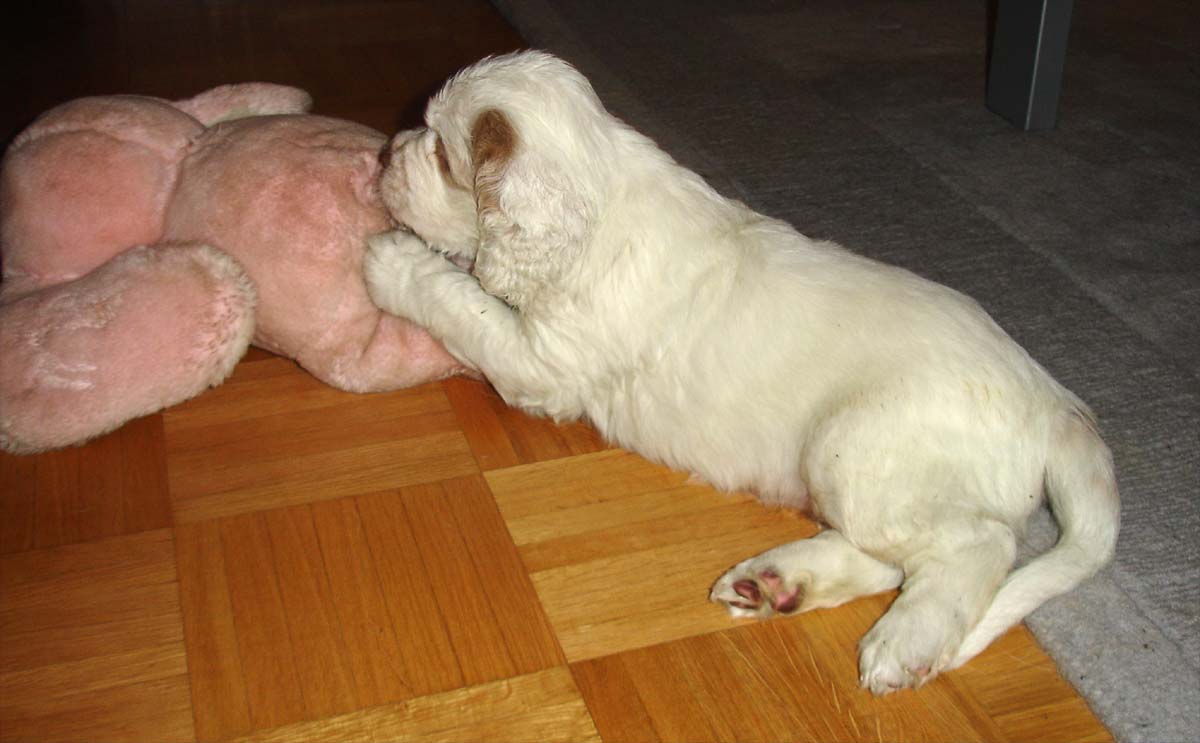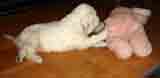 Spark with his favourite toy - the pink elephant
