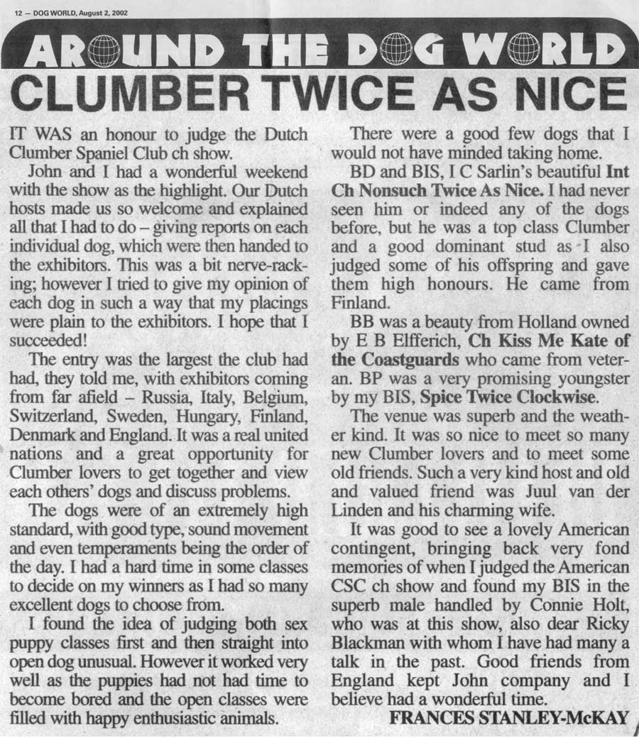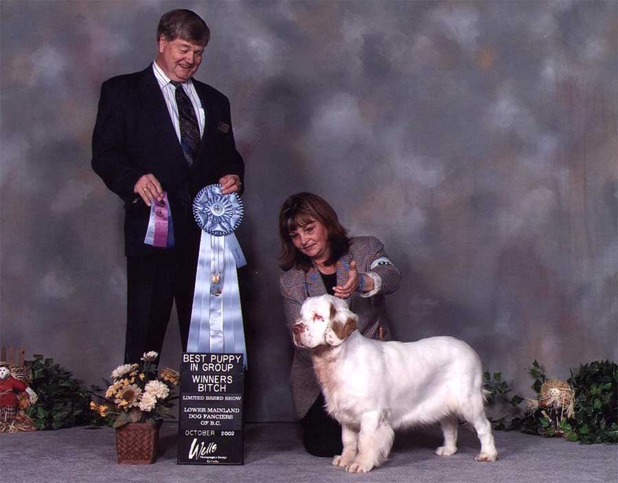 2002 Finnish Clumber Spaniel Club's Club Show , judge Kirsi Nieminen