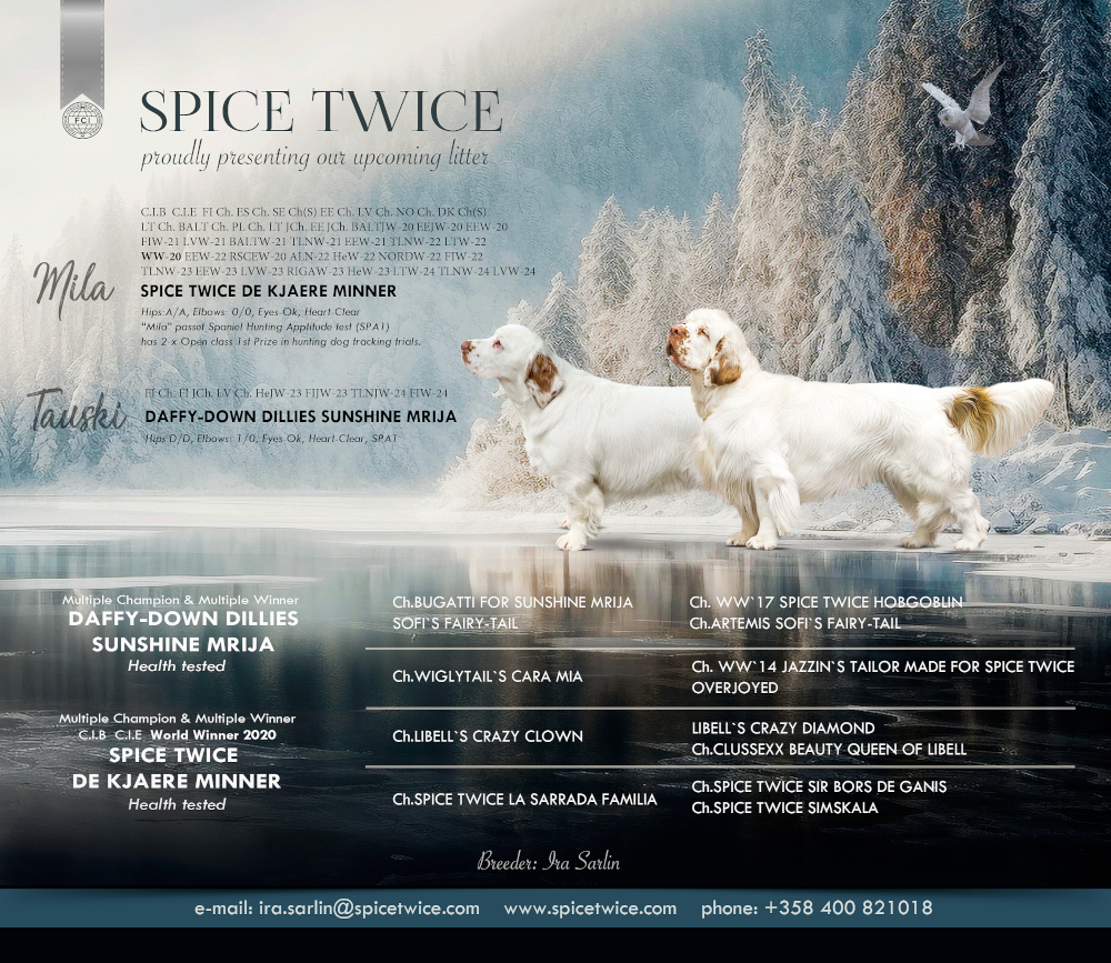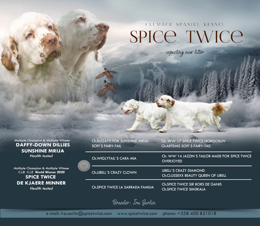If you are interested in becoming owned by a Spice Twice Clumber please get in contact !